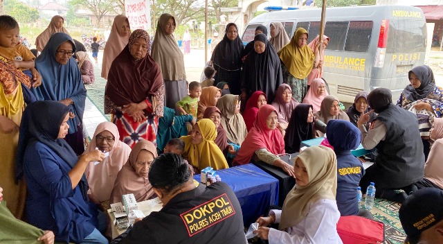 415 Warga Simpang Ulim Mendapat Layanan Pengobatan Gratis Polres Aceh Timur