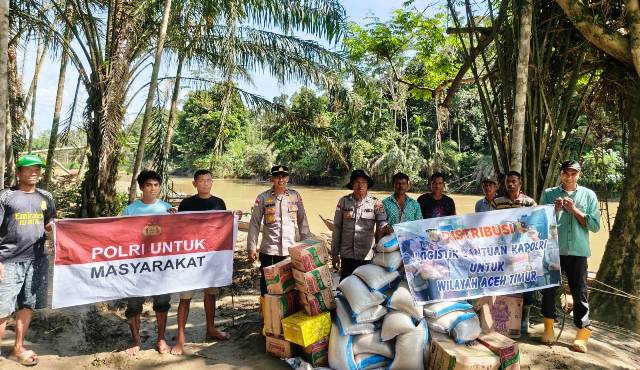 Arungi Sungai, Bantuan Kemanusiaan dari Kapolri Disalurkan oleh Polres Aceh Timur ke Warga Simpang Jernih