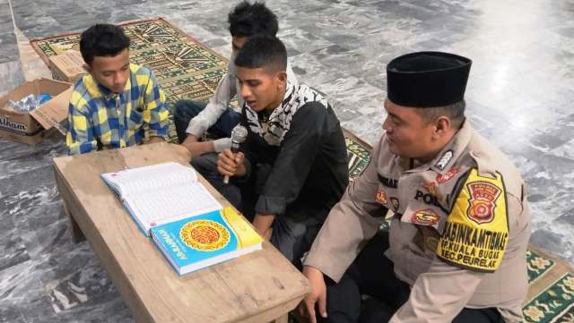 Bhabinkamtibmas Polsek Peureulak Bergabung dengan Remaja Tadarus Usai Tarawih