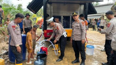 ACEH TIMUR – Polres Aceh Timur, Polda Aceh bersama BKO Brimob Resimen I Kedung Halang melaksanakan layanan bantuan air bersih dan…