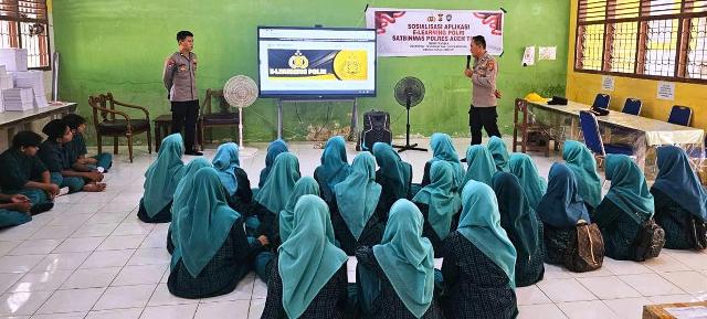 Dorong Literasi Digital, Satbinmas Polres Aceh Timur Sosialisasi E-Learning di SMPN 1 Peureulak