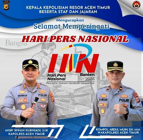 ACEH TIMUR – Dalam rangka memperingati Hari Pers Nasional (HPN) Tahun 2026, Kapolres Aceh Timur, Polda Aceh, AKBP Irwan Kurniadi, S.I.K. menyampaikan ucapan selamat serta apresiasi kepada seluruh insan pers di Indonesia.