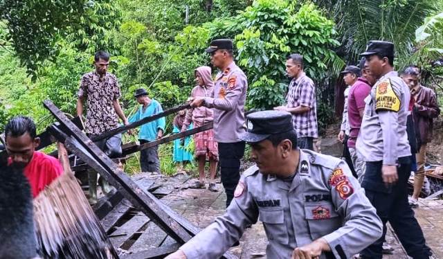Kepedulian Kapolsek Darul Ihsan Kepada Warga Korban Musibah Rumah Ambruk Akibat Hujan dan Angin Kencang