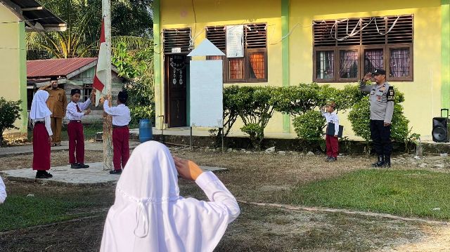 Peduli Generasi Penerus, Kanit Binmas Polsek Simpang Jernih Jadi Pembina Upacara Bendera di SDN Simpang Jernih