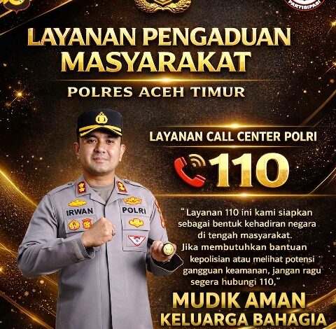 ACEH TIMUR – Polres Aceh Timur, Polda Aceh mengajak masyarakat untuk memanfaatkan layanan hotline Polri 110 sebagai saluran cepat pelaporan dan permintaan bantuan kepolisian, khususnya selama Ramadhan 1447 Hijriah hingga momentum Lebaran 2026.