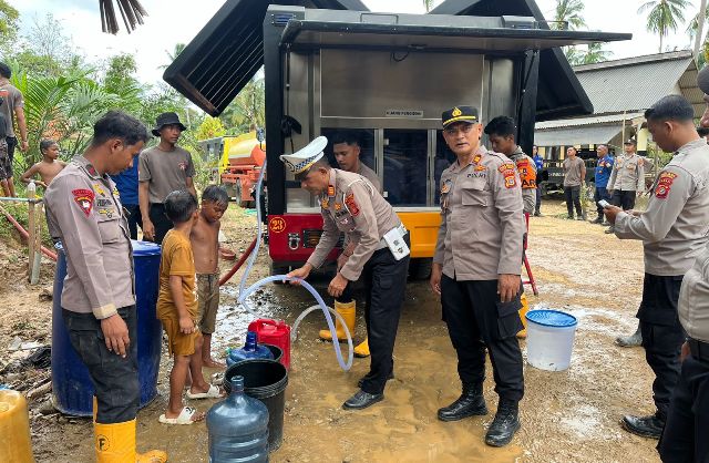 “Kami hadirkan Water Treatment Mobile terutama di wilayah yang paling terdampak dan mengalami kekurangan air bersih. Ini bukan sekadar bantuan teknis, tetapi upaya memastikan masyarakat tetap mendapat air aman dan layak konsumsi,” ujar AKBP Irwan Kurniadi.
